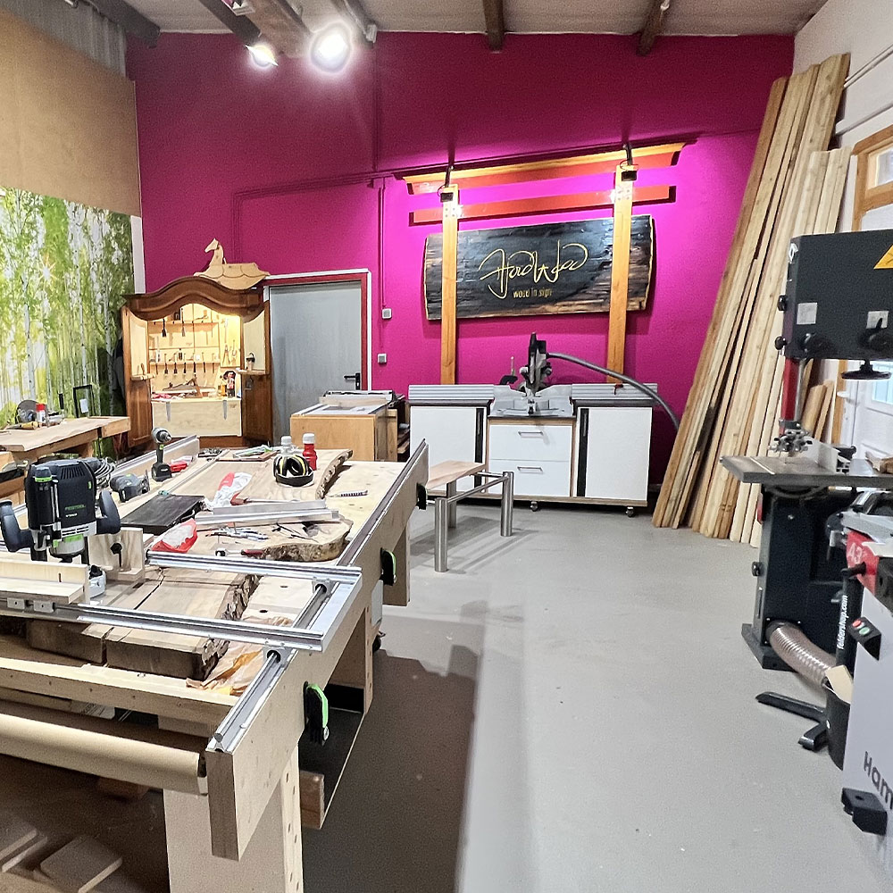 Nach langem Suchen habe ich nun meine Werkstatt gefunden und mit professionellen Werkzeugen ausstatten können. Jetzt habe ich das Glück und die Zeit, mich weiteren kreativen Projekten widmen zu können. „Back to the Roots“!